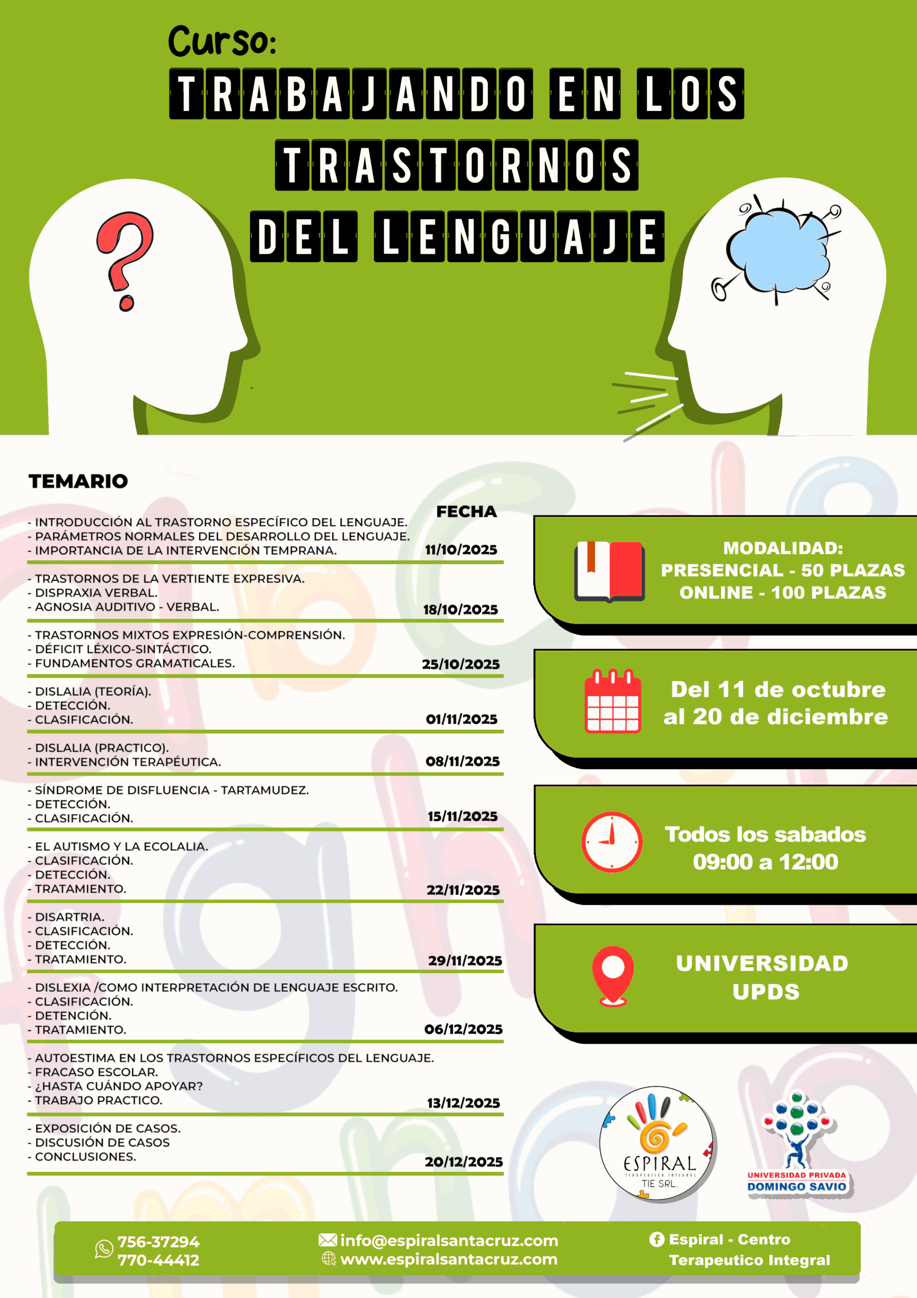 En el presente Curso abordaremos los Trastornos Especifico del Lenguaje (T.E.L.) desde sus conceptos y características básicas, siguiendo con la enseñanza de una metodología acorde a las características y tipos de T.E.L. que pueden estar presentes en las personas.